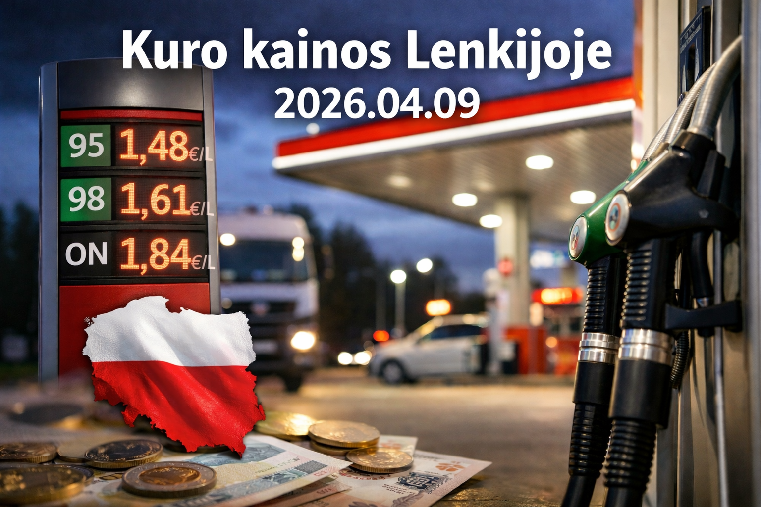 Maksimalios degalų kainos Lenkijoje 2026 m. – pokyčiai diena iš dienos, palyginimai ir poveikis rinkai