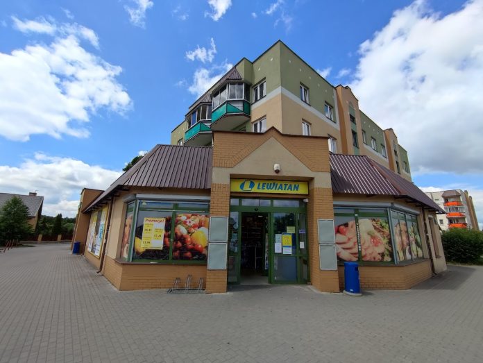 Maisto prekių parduotuvė "Lewiatan" įsikūrusi Suvalkuose, Szpitalna gatvėje 71.