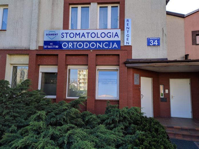 Gabinet Stomatologiczny "Diament" Rodziewicz Barbara įsikūręs Suvalkuose, Romualda Minkiewicza gatvėje 34.